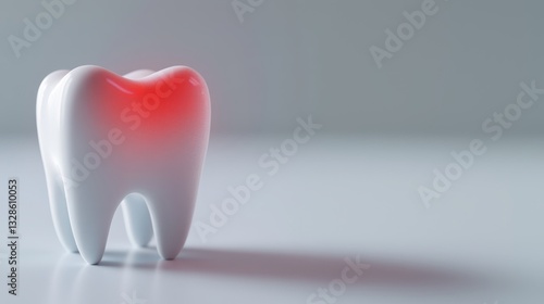 Inflamed white molar highlighting dental problem, reddened area signaling oral health concern against neutral gray backdrop with minimalist composition