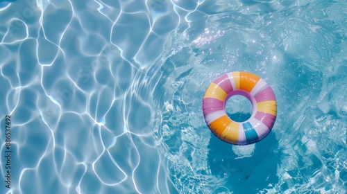 Inflatable ring in swimming pool on sunny day. Relaxation lifestyle concept. Summer holidays banner