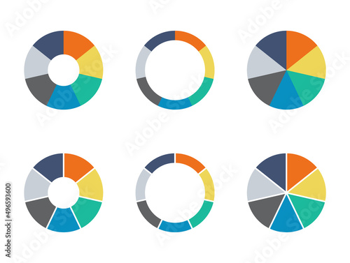 Infographic pie chart set. Cycle presentation diagram of collection 7 section. Vector isolated on white background