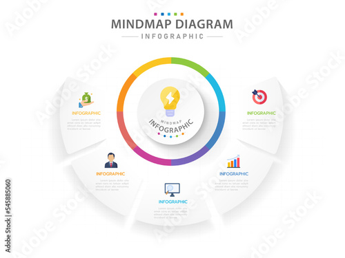 Infographic template for business. 5 Steps Modern Mindmap diagram with circles and topic titles, presentation vector infographic.