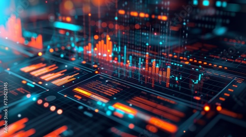 informative visual showcasing a financial data document with graphs, charts, and reports