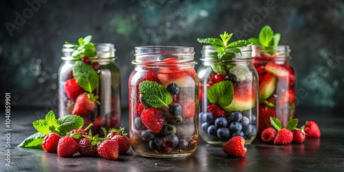 Infused Water with a Burst of Berries and Mint Leaves