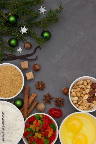 Ingredients for stollen. Christmas baking.