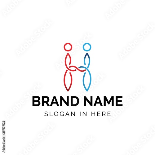 initial H letter with people collaboration shaped inside vector logo design illustration