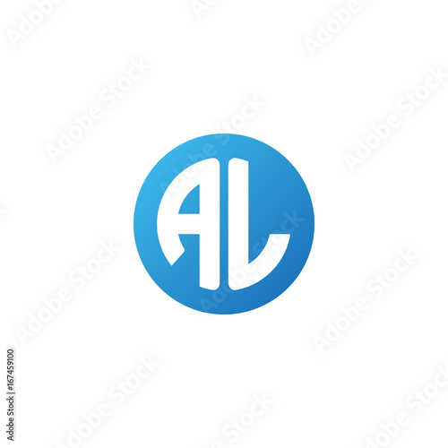 Initial letter AL, rounded letter circle logo, modern gradient blue color