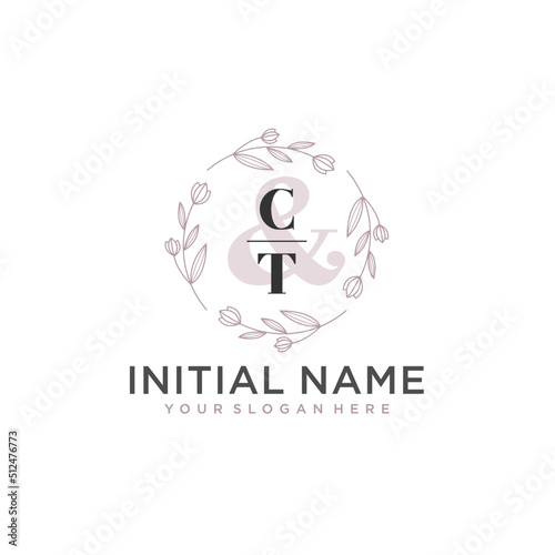 Initial letter CT beauty handwriting logo vector