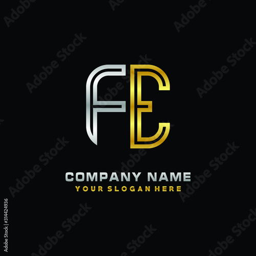 initial letter FE logo Abstract vector minimalist. letter logo gold and silver color