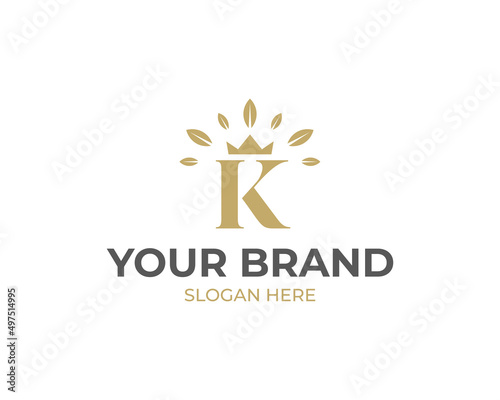 Initial letter K with leaf logo vector concept element, letter K logo with organic leaf