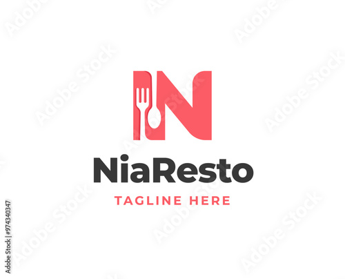 Initial letter N logo with fork and spoon icon for restaurant logo vector illustration