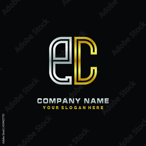 initial letter PC logo Abstract vector minimalist. letter logo gold and silver color
