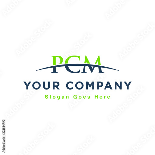 Initial letter PCM, overlapping movement swoosh horizon logo design inspiration in green and gray color vector