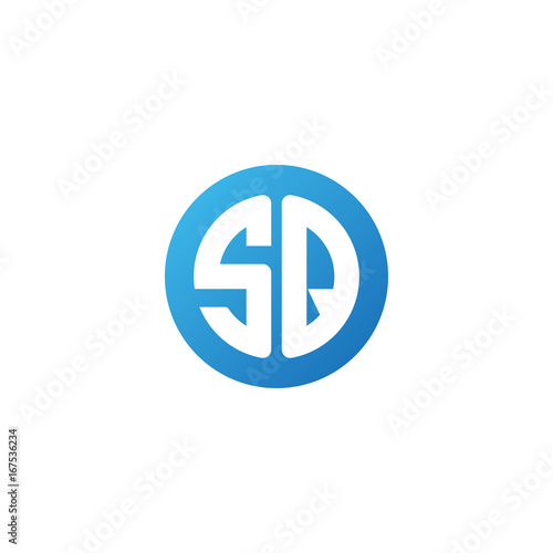 Initial letter SQ, rounded letter circle logo, modern gradient blue color