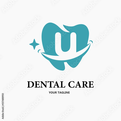 Initial Letter u with Tooth and Smile Icon for Dental Health Care and Dental Clinic, Dentistry Business Logo Idea Template