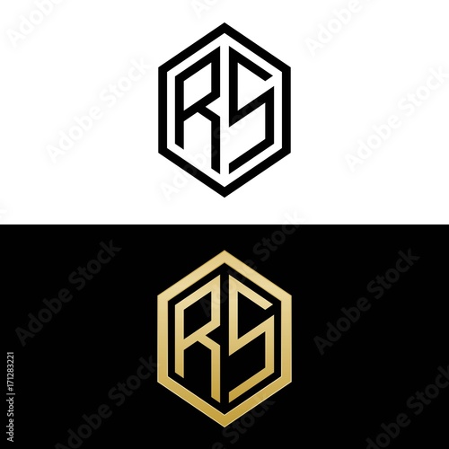 initial letters logo rs black and gold monogram hexagon shape vector