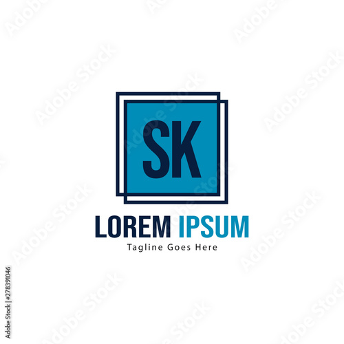 Initial SK logo template with modern frame. Minimalist SK letter logo vector illustration