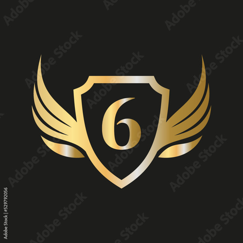 Initial Wing Logo On Letter 6 Alphabet For Transportation Logo Symbol