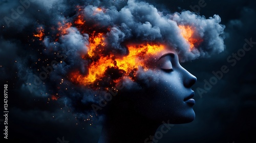 fire, woman, head, smoke, passion, serenity, surreal, art, digital, portrait, flames, burning, dark, intense, calm, mystery, imagination, creative, abstract, fantasy, emotion, inner, peace, power, energy, soul, mind, thought, concept, image, visual, design, artwork, illustration, photo, surrealism, expression, feeling, dream