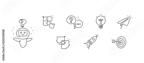 Innovation and Problem-Solving Icons – Creativity, Strategy, and Goal Achievement Symbols. Editable Stroke. AI Innovation.