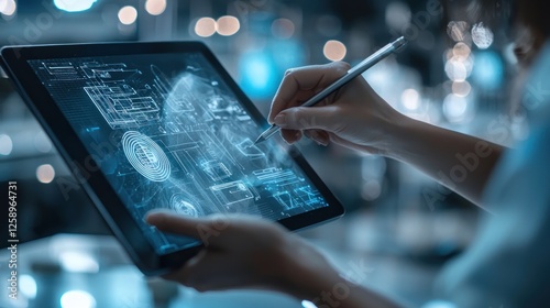 technology, digital, design, tablet, stylus, architecture, engineering, innovation, drawing, blueprint, vignetting, graphic, interface, screen, computer, software, project, plan, modern, future, creative, artistic, progress, development, invention, visualisation, three-dimensional, model, diagram, illustration, hand, device, electronic, contraption