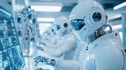 robot, laboratory, technology, automation, modern, advanced, collaboration, futuristic, artificial intelligence, innovation, workspace, computer, engineering, robotic, machinery, digital, high technology, science, programming, electronic, design, teamwork, precision, development, cybernetic, intelligent, system
