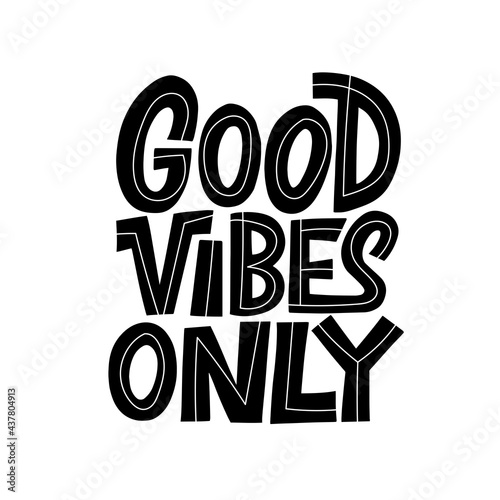 Inscription Good vibes only on a white background. Isolated vector. Graphic design lifestyle lettering. Handwritten lettering design elements for cafe decoration and shop advertising.