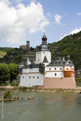 castle, rhine, rheinland, flux, water, holiday resort, historic, unesco, blue, heaven, cloud, tree, green, middle-ages