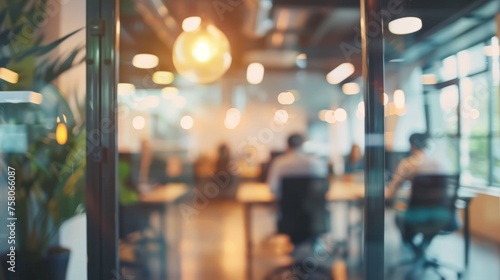 Inside a business office with a panoramic windows. Co-working in Contemporary Spaces