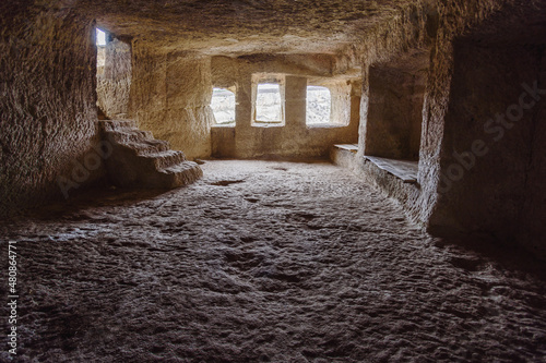 Inside of cave room in cave city Chufut-Kale in Bakhchysarai, Crimea