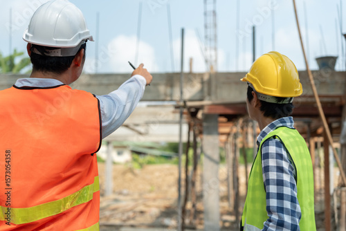 inspector engineer and owner project is inspecting construction and quality assurance new house. Engineers or architects or contactor work to build the house before handing it over to the homeowner