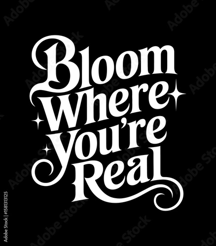 bloom, real, typography, lettering, quote, inspirational, motivation, positive, affirmation, encouragement, vector, design, graphic, text, saying, modern, stylish, aesthetic, black, white, simple, elegant, clean, element, t-shirt, poster, print, digital artwork, calligraphy, handcraft, unique, expressive, word