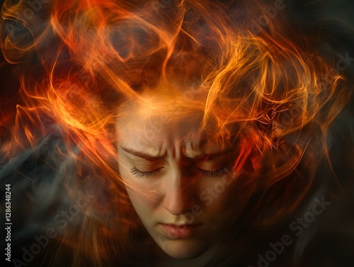 emotion, face, art, creativity, expression, heat, intensity, flames, feature, portrait, girl, mystery, concept, energy, imagination, dream, surreal, abstraction, beauty, light, shadow, photo, colours, design, mood, mind, inner, struggle, passion, nature, spirit, soul, dreamlike, artistic, surrealism, visualisation, thought, power, transformation, fire, warmth, atmosphere, vision