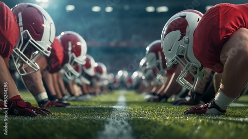 football, stadium, sport, team, game, play, field, ball, athlete, competition, player, uniform, helmet, equipment, grass, turf, crowd, fan, cheering, energy, action, strategy, skill, victory, defeat, challenge, intensity, athleticism, touchdown, quarterback, offence, defense, ref, scoreboard, grandstand, spectator, enthusiasm, determination