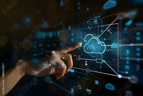 Interactive Cloud Technology with Futuristic Digital Interface and Data Connectivity