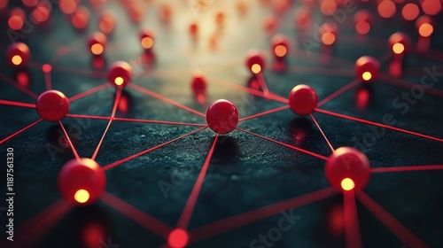 Interconnected Red Spheres Network Abstract Digital Art
