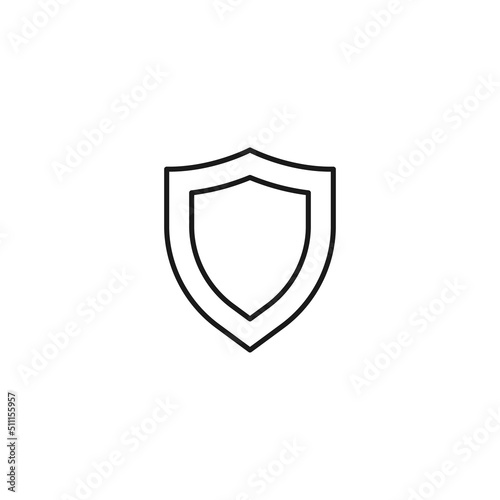 Interface of web site signs. Minimalistic outline symbol drawn with black thin line. Suitable for apps, web sites, internet pages. Vector line icon of shield or armor
