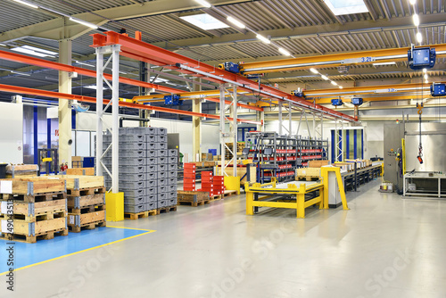 Interieur in einer Industriehalle - Lagerung und Herstellung im modernen Maschinenbau // Interior in an industrial hall - storage and production in modern mechanical engineering