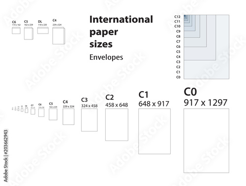 International standard of paper sizes for printing C0 - C12 type and envelopes for document.