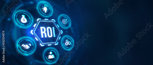 Internet, business, Technology and network concept. ROI Return on investment financial growth concept. 3d illustration.
