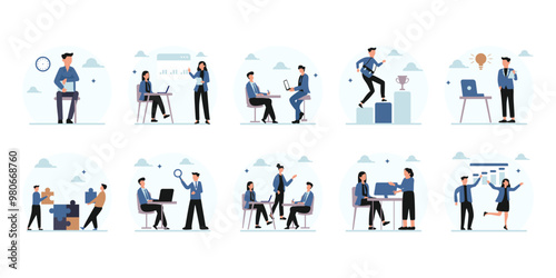 Internship illustration set. applicant, training, mentoring, potential, skills, development, career, opportunity, productivity, goals, vector illustration, transparent background