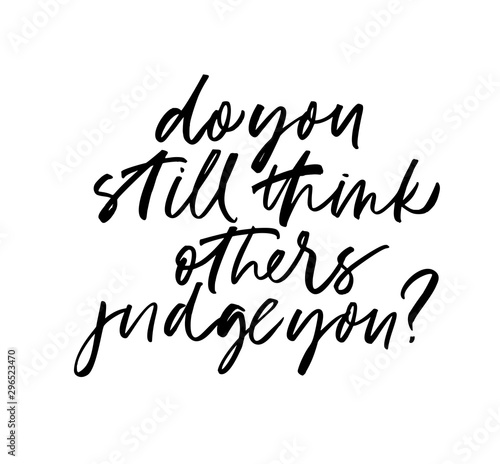 Interrogative phrase: Do you still think others judge you? Ink pen vector lettering.