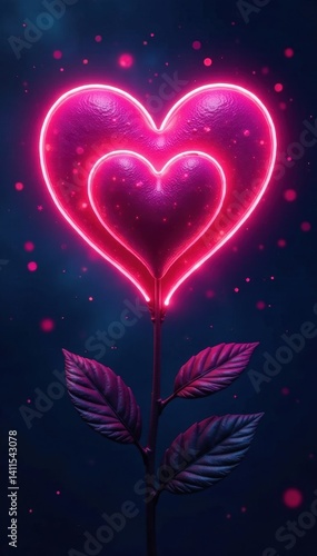 Intertwined neon hearts forming a blooming flower, stars twinkling , stars, cute, pretty