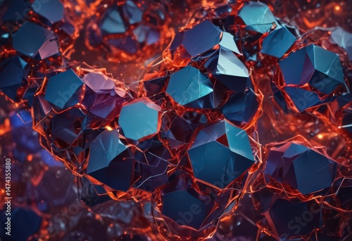Intertwined polygons in bold hues, symbolizing digital interactions , bold, information