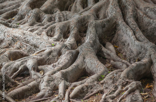 Interwoven buttress roots of a large fig tree