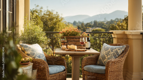 intimate, balcony, setting, 2, chair, petite, table, wine, essential, vibrant, greenery, distant, hill, romantic, escape, cosy, relaxing, leisure, lifestyle, elegant, stylish, inviting, nature, view, airy, bright, vacation, retreat, couple, private, idylli, comfortable, harmonious, ambience, decorative, get-away, garden, chair, furniture, bench, home, hotel, terrace, summer, eatery, cafes, wood