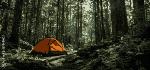 camping, forest, tent, nature, adventure, wilderness, tree, wood, sunlight, hiking, travel, exploration, solitude, peaceful, serene, tall trees, backpacking, national park, escape, trail, survival, rustic, canopy, scenic, pine tree, timberland, tranquil, morning light