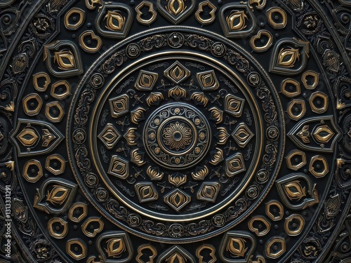 Intricate black & gold circular pattern, ornate design , luxury background, sophisticated