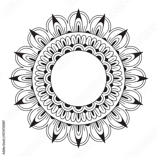 mandala, circular, pattern, design, black-and-white, ornate, decorative, geometric, symmetry, radial, floral, flower, art, illustration, graphic, element, abstract, zen, meditation, colouring, page, template, border, frame, copy space, empty, center, background, isolated, white background, vector, line art, drawing, hand-drawn, traditional, ethnic, cultural, spiritual, yoga, wellness, henna, tattoo, style, outline, simple, clean, modern, artistic