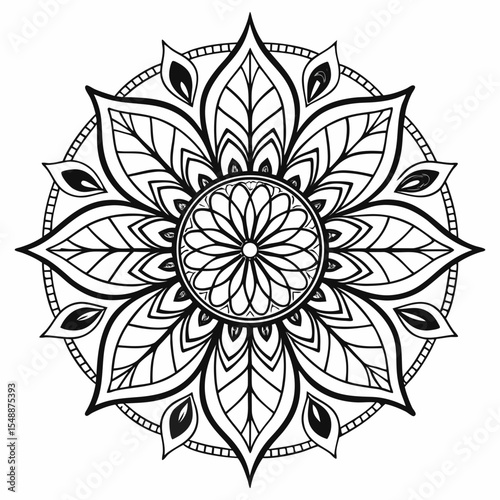 mandala, design, black, and, white, colouring, adult, floral, pattern, geometric, art, illustration, decorative, round, circular, symmetric, detailed, intricate, flower, leaf, meditation, spiritual, yoga, tattoo, henna, vector, graphic, drawing, template, printable, artwork, element, background