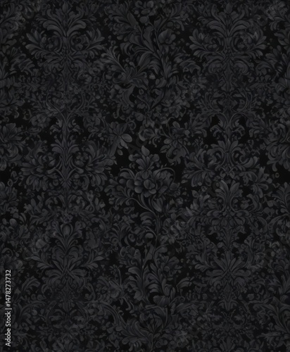 Intricate black damask wallpaper, seamless gothic floral vines , illustration, dark