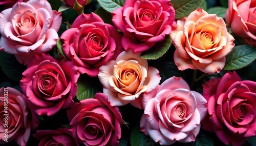 Intricate blooming roses, densely packed, vibrant hues, surface pattern, pink, luxury
